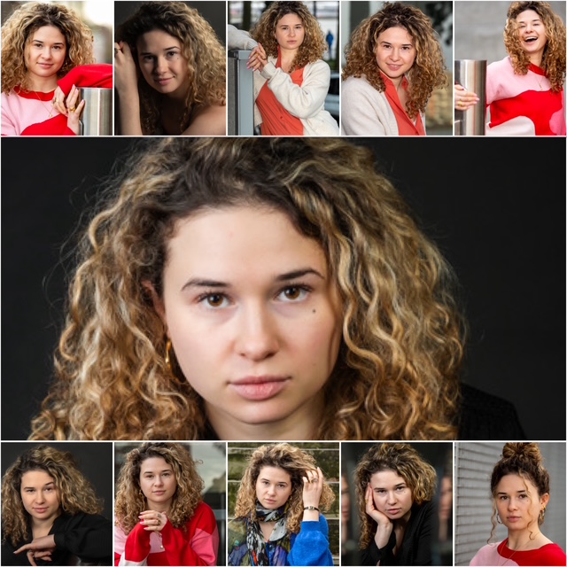 *Tijdens een FOTOSESSIE van 1,5 uur maken we casting-portretten en -totalen in en om onze studio in 3 kledingsets.